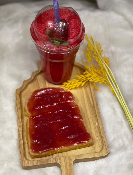 โมเดลขนมปังปิ้งปลอมแยมสตอเบอรี่